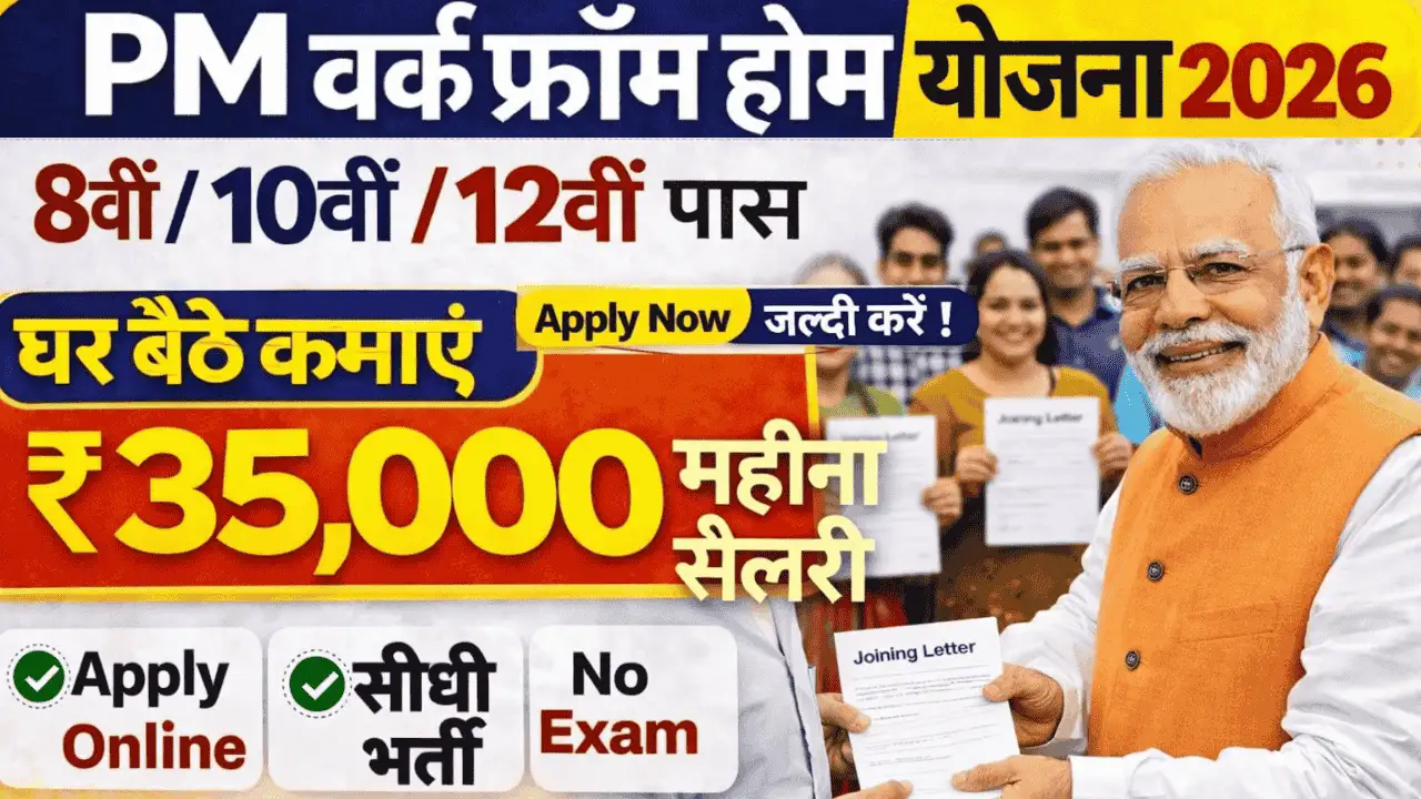 PM Work From Home 2026 : पीएम देंगे 10वीं–12वीं पास और स्किल वाले युवाओं को घर बैठे काम, सैलरी और आवेदन प्रक्रिया नया रूल लागू